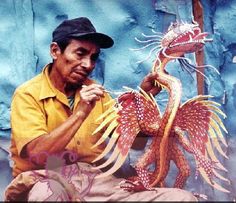 Alebrijes or spirit Guides are brightly colored Mexican folk art sculptures or mythical creature. It is very known in Mexico. Pedro Linares make the first Alebrijes. Every alebrijes is a chimaera animal.